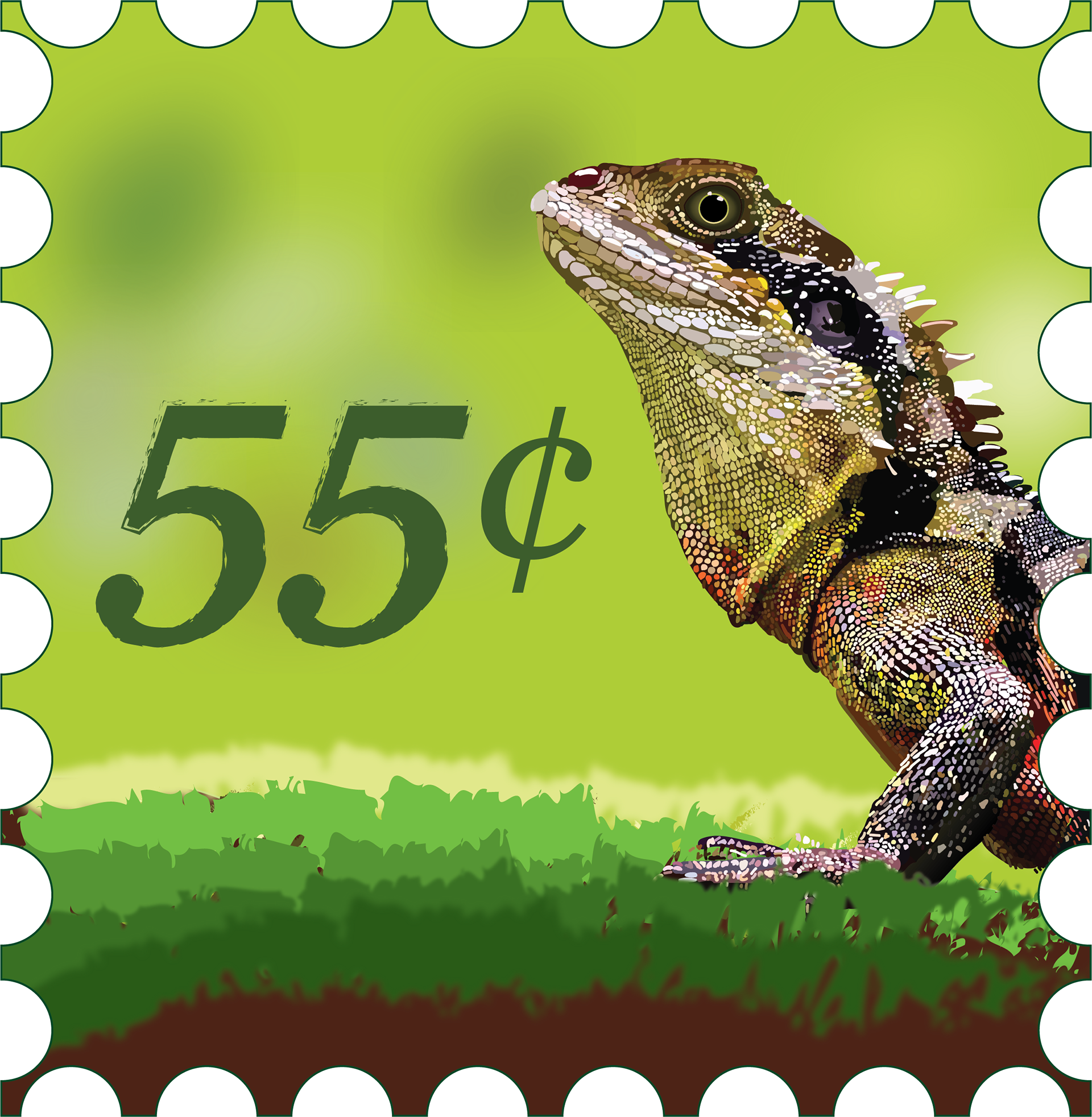 This is a project for Computer Illustration. I had to paint a photo of a lizard entirely within Illustrator and create a postage stamp.